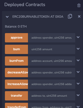 배포된 컨트랙트 함수는 아래 Deployed Contracts 목록에서 볼 수 있으며, 사용 가능함
