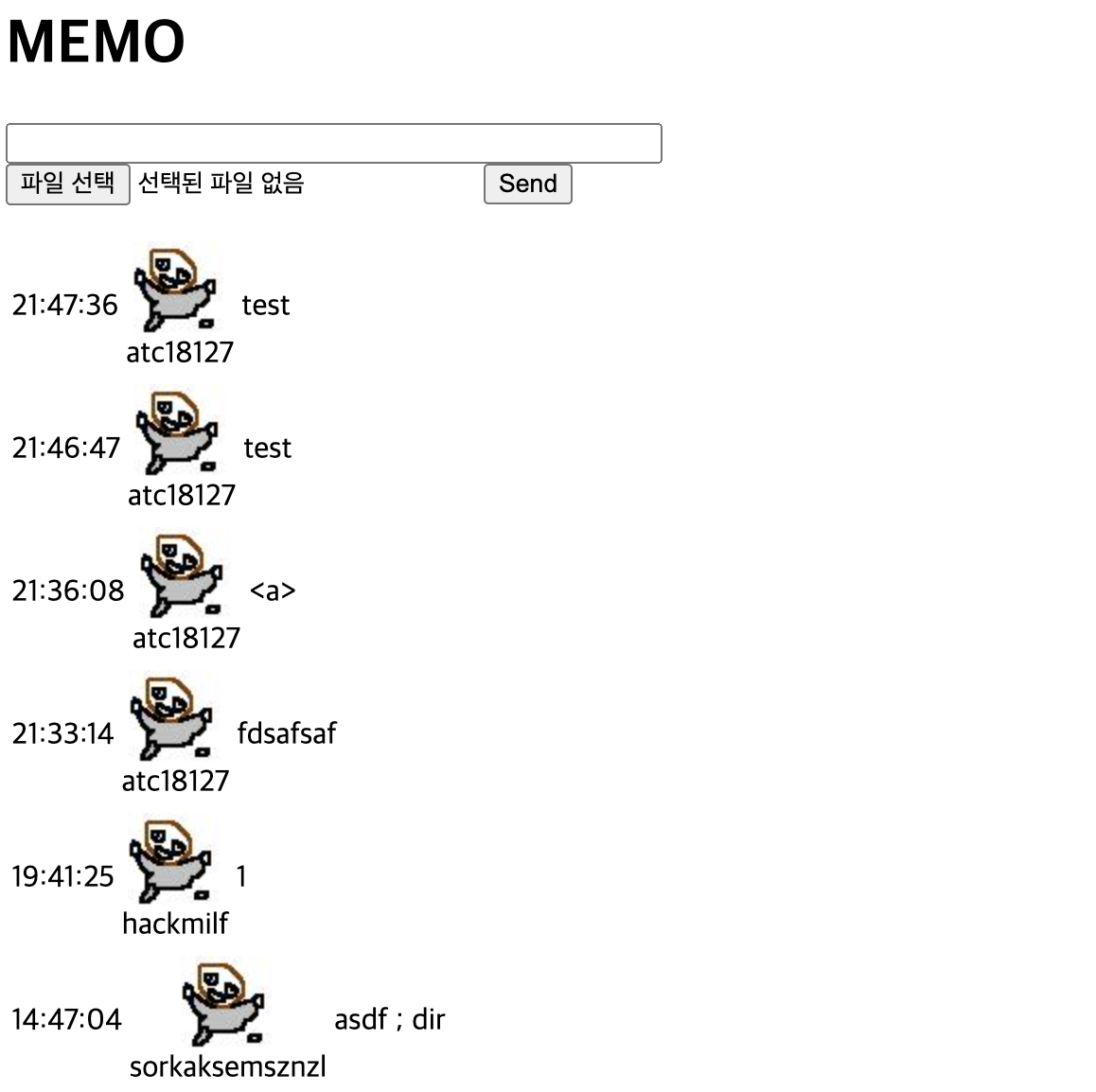 파일 업로드 기능이 있고, 정상적으로 파일이 올라가는 것을 확인할 수 있다.